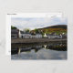Photo of the town of Ullapool, gateway to the Outer Hebrides, in the highlands of Scotland, United Kingdom. The picturesque white buildings are reflected in the water of the sea loch.
