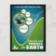 Environmental Earth Day design featuring Planet Earth in a group of green circles, in the surrounding circles are customisable text lines Please Reduce, Reuse and Recycle! Blue sky and green earth coloured background with leaves in lower corner. All of the text can be edited, allowing you to add whatever text you want! If you don't need a text line, just delete it! Cherish and Protect the Earth text can be changed to anything you want! Celebrate Earth Day Everyday upper text can be edited!
