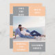 Ultimate grey and peach colour block wedding Save the Date card. The back includes a pattern with wide bands in grey and peach.