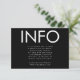 This fantastic clean, tidy well designed modern minimal yet very playful Bold Names & text placement in Black and White for minimalistic style, however is customisable to other colours and is part of a unique suite and collection by Phrosne Ras Design. This would be great for those planning a fun black & white event, with this wedding information Enclosure Card being bold and was inspired by fun-loving people who love a good party and don't mind straying from tradition.