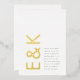 This REAL GOLD fantastic clean, tidy well designed modern minimal yet very playful bold monogram & text placement in REAL GOLD, Black and White for minimalistic style, however is customisable to other colours and is part of a unique suite and collection by Phrosne Ras Design. This would be great for those planning a fun black & white event, with this wedding invitation being bold and was inspired by fun-loving people who love a good party and don't mind straying from tradition.