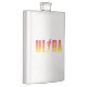 The product is a good size and came exactly as it was pictured.  The lid is not attached to the flask, which could be dangerous on drunken nights... The print came out surprisingly well and looks very sharp.  Would definitely recommend.