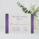 Chic iridescent purple damask wedding response card, with graphics of a silver accents and a pearl white text area. Personalise all the text to suit your wedding needs. Matching products are available.