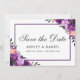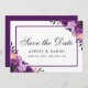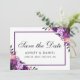 Ultra Violet Purple Watercolor Floral Save The Date Engagement Announcement Card - Purple Frame - Purple Back