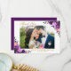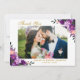 Ultra Violet Purple Watercolor Floral Wedding Photo Thank You Card - Gold Script - Purple Back