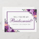 Ultra Violet Purple Watercolor Floral Wedding Will You Be My Bridesmaid Card - Purple Script - Purple Frame