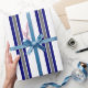 Ultramarine Blue and Grey Striped Wrapping Paper