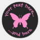 Pink ulysses butterfly. Vector icon with customisable colour. Custom background colour. Two custom text fields on circle.
