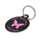 Pink ulysses butterfly. Vector icon with customisable colour. Custom background colour. Two custom text fields on circle. Custom text at back side.