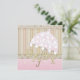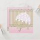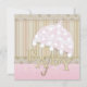 This shabby-chic baby shower invitation from Kustom By Kris is precious with its soft tones and antique design. The front says "Baby" and features an umbrella on a striped background. Personalise the pink back with the party details.