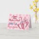 Sweet First Father's Day card for Father to Be with baby girl theme featuring a pink teddy bear riding in an umbrella, big dots and other special touches on card front and inside verse. Customise inside card with Your greeting and signature.