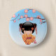 Ume Kokeshi Doll - Japanese Geisha Girl Blue 6 Cm Round Badge