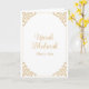 Islamic Muslim White Elegant Umrah Mubarak Greeting Card. Celebrate with your loved ones on this special religious occasion. This product has a gold Victorian baroque scroll design in the corner of the border for a luxury feel. Vintage. Antique. There is a golden script typography. Customise the information that is written like "may your sins be forgiven" and the names of the couple by using the design tool. You can choose the paper type. Congratulations. HerLineForDesign on Zazzle.