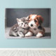 A puppy and a kitten side by side, united by their gaze and tenderness. This sweet and serene scene reveals the power of pure and innocent friendship between two worlds joined by affection.