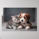 A puppy and a kitten side by side, united by their gaze and tenderness. This sweet and serene scene reveals the power of pure and innocent friendship between two worlds joined by affection.