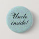 Black print "Uncle inside!" on turquoise pattern. Suitable at birth or baby shower party, or to honour a favourite uncle. Text can easily be customised. There also exists similar buttons with blue, pink or peach backgrounds.