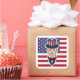Sticker with an illustration of Uncle Sam with the American flag as a background, 4th of July patriotic design by Maxi Harmony / Radka Kavalcova