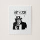 Uncle Sam telling you to get a job. Funny image in black and white with speech bubble.