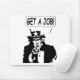 Uncle Sam telling you to get a job. Funny image in black and white with speech bubble. Custom mouse pads.