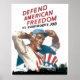 A WWII vintage poster showing Uncle Sam with rolloed up sleeves, removing his top hat in favour of a work cap. A background of war time factories.