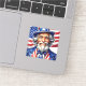 Smiling uncle Sam USA American Icon wearing an American suit and a waving American flag in the background