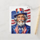 Smiling uncle Sam USA American Icon wearing an American suit and a waving American flag in the background