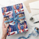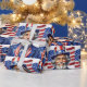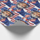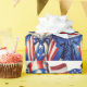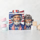 Smiling uncle Sam USA American Icon wearing an American suit and a waving American flag in the background