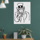 Simple black and white line drawing of Uncle Sam doing his famous WE WANT YOU pointing finger pose. Easily customize and add your own slogan. Illustration available on various gifts and products.