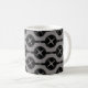 Funky Uncommon Circles patterned mug in grey. This trendy and cool mug would be a great choice to sip your morning coffee out of, whether at work or at home. To give this mug a more personal touch, customise it with text of your own choosing.