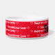 This bold red pet bowl with white text wrapping around the pet water or food bowl describing your fun loving Dog's character and personality, Happy-go-lucky and Unconditional Love will be perfect when personalised with your Dog's Name in black text boldly. With just a little editing you can easily change the background colour to any colour you wish to match your decor or your pet's desire.