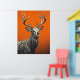 This striking artwork features an undead deer rendered with detailed horror-comic styling, set against a bold orange background that makes the entire piece visually pop. Ideal for fans of dark fantasy or unique creature designs, this illustration blends wildlife art with macabre elements. The distressed texture and muted ink tones create a vintage feel, while the bright orange adds a modern twist that stands out on any product — from apparel to wall prints.