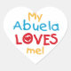 My Abuela Loves Me T-shirts, cards, stickers, bodysuits bags, and more with colourful red, yellow, and blue text and heart design. These Abuela Loves me apparel and gift items will make your abuela smile!