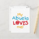 My Abuela Loves Me T-shirts, cards, stickers, bodysuits bags, and more with colourful red, yellow, and blue text and heart design. These Abuela Loves me apparel and gift items will make your abuela smile!