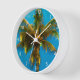 Sunlight strikes the coconut palm in the original photograph by ZoeSPEAK on this Wall Clock. Looking up at the tree we see some coconuts at the base of the fronds as they spread out against the tropical blue sky. The tips of the fronds are lit up like candles by the sun.