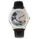 Hokusai: Kanagawa Oki Nami Ura, ca. 1832 Vintage Japanese Print shows a huge wave bearing down on boats with a view of Mount Fuji in the background.