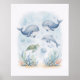 Bring bath time to life with this adorable ocean-themed kids bathroom wall art featuring whales, dolphins, turtles, and coral reefs in soft blue watercolor tones. Perfect for ocean or coastal-inspired kids bathrooms.