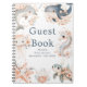 Beautiful baby shower guest book features a dolphin, whale, jellyfish, seahorse, starfish and turtle with coral pink floral arrangements. Perfect for a baby shower. The words can be changed to suit your own details or requirements