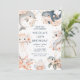 Beautiful birthday party invitation features a dolphin, whale, jellyfish, seahorse, starfish and turtle with coral pink floral arrangements. Perfect for a birthday party. The words can be changed to suit your own details or requirements