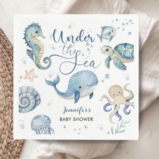 Make a splash with our "Under The Sea" Baby Shower Invitation! A charming watercolor design for your baby boy's special day. Order yours today!