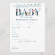 Designed as one of the games in our Under the Sea Theme Baby Shower Suite collection, this sweet design features elegant BABY letters decorated with ocean animals, waves, and sections where guests can predict baby's name, birth date, who baby will resemble, and more. Guests simply fill in the blanks, and can offer some words of advice for mum and dad as well. Copyright Elegant Invites, all rights reserved.