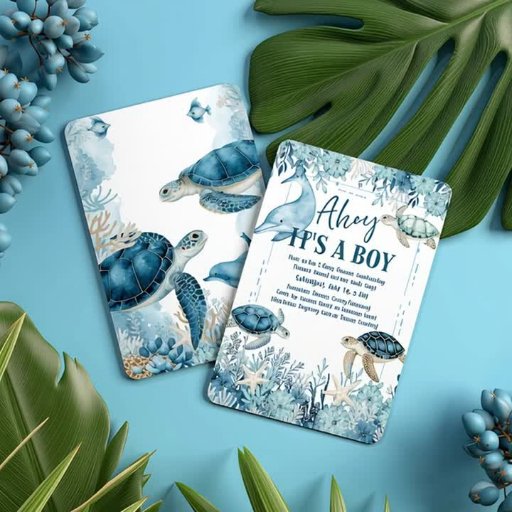 Dive into the perfect celebration with our Under the Sea Blue Ahoy It's a Boy Baby Shower Invitation! This stunning nautical-themed design features adorable dolphins, turtles, and ocean vibes in vibrant blues, ideal for a trendy baby shower. Perfect for modern moms-to-be, this customisable invite adds a splash of style with its watercolor artistry and sea-inspired charm. Ideal for unique baby showers, gender reveal parties, or nautical nursery themes. Boost your event with this eye-catching, high-quality digital design—perfect for printing or sharing online. Grab this must-have baby shower invite today to make waves at your next celebration