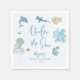 Cute under the sea theme baby shower paper napkin featuring illustration of sea creatures and coral reef.
