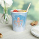 Under the sea paper cups. Watery blue background with cute pink octopus.