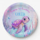 Under the sea cute sea turtle pink purple birthday party monogrammed printed paper plates template happy birthday party plates, sip and sea girl's birthday party personalised table decor