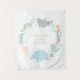 This sea animal themed birthday tapestry features a whale, tiger shark, jelly, sea turtle and seahorse all