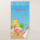 An adorable bath towels with a pretty blonde mermaid princess on rock, surrounded the coral, crabs, fish and shellfish and a blue background. It is a great gift idea. Personalise with your own special text. Matching items available in our store. Some Graphics by urbanwillow.
