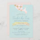 This cute birthday invitation card features light turquoise blue background with a mermaid tail in pink, purple, white, and faux gold foil with a school of fish. The reverse side features blush pink background. Perfect for under the sea birtday parties! Personalise it for your needs. You can find matching products at my store.