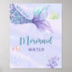 "Under the Sea" themed birthday invitation. Watercolor pastel purple and blue hues, featuring playful mermaid tail, clown fish, and corals.