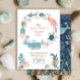 Your baby is turning three! Invite your special guests with this adorable modern under the sea theme invitation featuring a 'wreath' of hand painted ocean animals including a whale, coral, and octopus and more, with hand lettered script typography. The back of the card features an under the sea ocean theme illustration. Copyright Elegant Invites, all rights reserved.