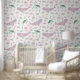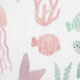 Sea animal themed wallpaper for your little girl's Nursery or Bedroom. Perfect for your little ones nursery, playroom or kids bedroom. This design features pastel watercolor whale, jellyfish, turtle and fish in purple, pink and green tones.